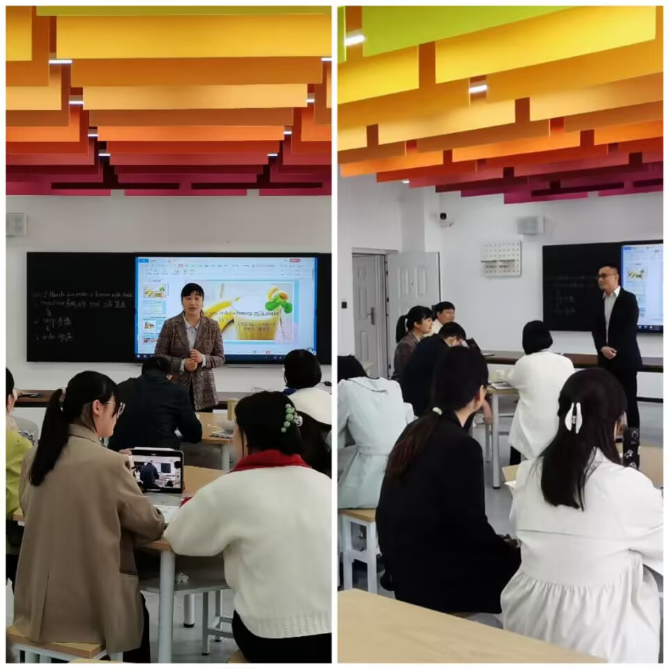 现场展示环节,参赛实习生纷纷展现出自己独特的教学设计和巧妙的教学构思,比如,在英语组,周路瑶讲授了“How do you make a banana milk shake?”,周老师展现出饱满的亲和力,使课堂变得生动活跃。沈欢授课的内容是“I’m more outgoing than my sister .”,沈老师通过深入浅出的语言讲解有关比较级的知识,逻辑严密,层层递进。李秀子讲授了“Do you want to watch a game show?”,李老师挖掘育人元素,引导学生学习动画人物米老鼠的优秀品质。英语组的各位老师都展现出了扎实的英语教学能力。在语文组,张一凡授课的内容是竺可桢的《大自然的语言》,张老师带领学生剖析文章、分析写作手法,细致入微、环环相扣。常持杰选择讲解陶渊明的《饮酒<其五>》,常老师通过播放视频营造恬淡闲适的氛围,引导学生感悟作者的高洁志趣。张静楠授课的内容是周敦颐的《爱莲说》,张老师展现出了生动的教学语言和独特的教学设计。语文组的各位老师通过对不同类型文本的讲解展现出了语文学科及语言的独特魅力。伍思怡老师以“共筑生命家园”为主题,结合将军路中学的生态文化,引导学生思考保护濒危动物的重要性。向莉华老师则采用解读史料、分析地图、观赏视频等多样的方式带领学生学习“宋朝商业发展”的相关知识。