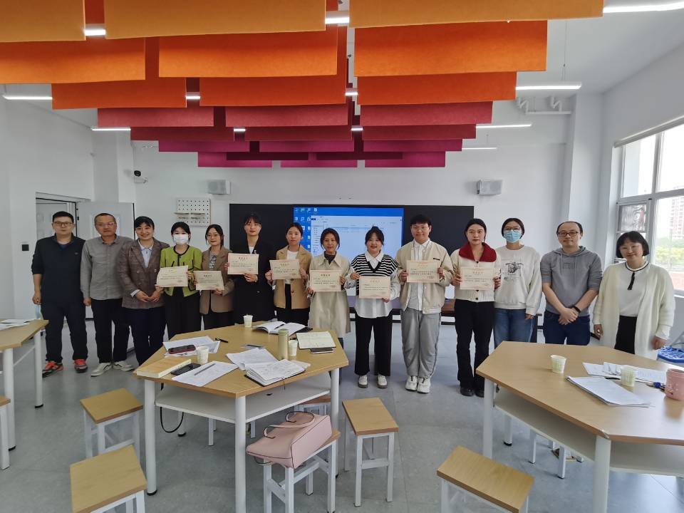 现场展示环节结束后,评审团针对参赛人员的表现进行了评价。祝欣主任从教学仪态、教学方法、师生互动等方面对参赛实习生提出了表扬。肖凯老师肯定了参赛实习生的目标意识、资源意识、规范意识、创新意识有所提升,同时从细节意识、学科意识、学生意识三个方面指明了改进的方向。随后,赵东方主任以及祝欣主任为获奖人员颁发“新睿杯”奖状,张静楠、周路瑶、向莉华、常持杰获得一等奖,沈欢、李秀子、伍思怡、张一凡获得二等奖。