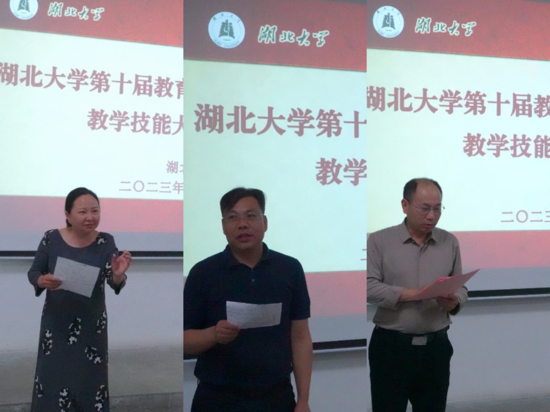 各评委老师对此次开展的教育硕士研究生教学技能大赛给予了肯定与支持。武汉实验小学徐莉老师从教学活动的记忆、理解、应用、分析、评价和创造六方面进行总结,建议选手们要提高对事实性、概念性、程序性和元认知知识的理解和应用,提出迁移运用、量规设计等教育热点;武汉市经开区第三中学肖文记校长从“导、学、得、评”的多元角度进行分析,告诫选手们教学并不是简单的线性关系,并对参赛选手的状态、表达和过程给予表扬,对板书、学情分析、新课标解读、教学过程衔接等方面给出了建议。