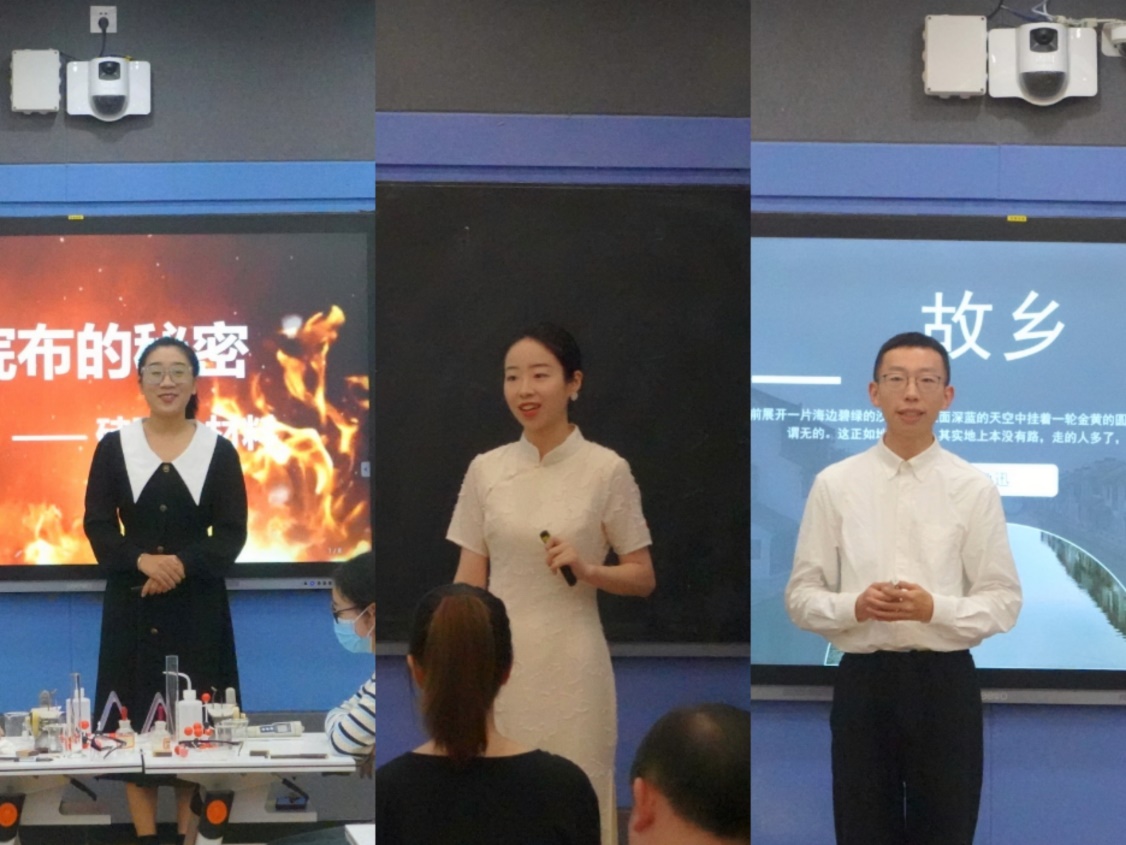 决赛参赛人员分文科组和理科组两个赛道三个小组进行,比赛内容涉及2个学段、11门学科的“教案设计”和“模拟授课”两大部分,25名专家评委和13名群众评委(学生代表)现场评分。比赛过程中,选手们以良好的面貌和充分的准备展现了挥洒自如的仪态和扎实的教学基本功,各位评委老师以详细且具有针对性的点评博得了现场的阵阵掌声。