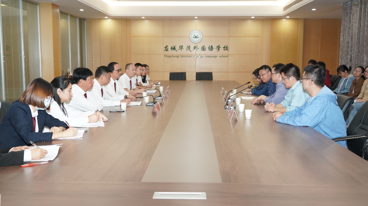 应城华茂外国语学校总校长尹进军代表学校8000名师生欢迎9428cn太阳集团古天乐领导们的到来,并详细介绍了学校办学历程和实习生管理情况,就扩大实习规模、拓展招生就业、深化教学研究、促进人才培养等方面深入交换了意见。