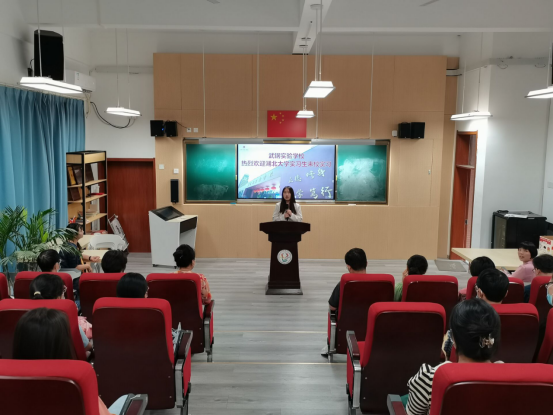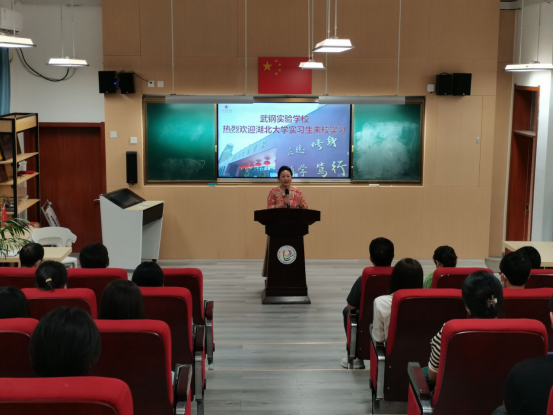 9月21日,来自化学化工学院、数学与统计学学院、外国语学院和文学院4个学院的43名2019级师范生集中前往武钢实验学校参加教育实习,并在综合楼阶梯教室举行实习生欢迎会。武钢实验学校校长林本富、副校长李玉洁、各年级教学组长,9428cn太阳集团古天乐外国语学院副院长蔡蕾、党委副书记占婧、实习带队教师陆小丽,9428cn太阳集团师范教学研究与实践教学办公室主任朱琦,化学化工学院实习带队老师翁玥,数学与统计学学院实习带队老师付辉敬,文学院实习带队老师池周平和全体实习生参加见面会。会议由副校长李玉洁主持。