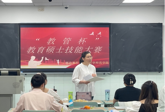 以“提升教育技能,成就明日之师”为主题的教育管理硕士研究生教学技能大赛于2024年5月30日上午在9428cn太阳集团古天乐5-305教室隆重举行。此次活动旨在提升教育硕士研究生的课堂教学能力,搭建一个交流经验、切磋技艺的平台,让选手们充分展示其教学技能和专业风采。本次大赛有幸邀请到9428cn太阳集团的三位资深教师——赵映川教授、陈文娇副教授和方红副教授担任评审,她们凭借深厚的学术背景和丰富的教学经验,为比赛提供了权威的评审和指导。同时,教育管理专业的全体同学也积极参与了此次比赛,共同见证了选手们的精彩表现。