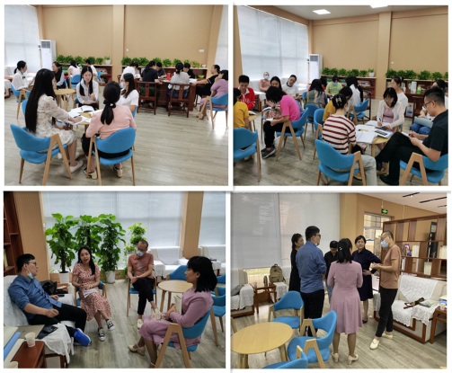 下午1点50分,湖大专家团队李经天、马勇、沈曦、肖凯、鲁婷等成员参与了在学校图书馆“教师书吧”开展的数学、英语两个学科教研组的集体教研和分年级教研活动。两个学科教研组围绕研讨教学计划,统一教学进度;共同研究教学难点,重构教学设计;教学经验交流,指导新进教师等三大目标展开教研活动,有利于教研活动的正规化、常态化、深入化运行。在学科组活动中,湖大专家团队与教师们一起交流观点,相互切磋,思想碰撞。通过对教研活动的整体把脉,湖大专家对将军路中学进一步提升教研活动质量提出了“加强教研组长和备课组长的培养、加强对集体教研活动的谋划、加强教研活动和课例研修的结合”等建议。鲁婷副教授在701班听了周晓倩老师讲授的一节“心理健康教育”课,课后与周老师进行了深入交流,了解了将军路中学心理健康教育的需求,并与庄爱斌副校长交换了意见,对下一步有针对性地开展家长培训、班主任培训、学生心理健康活动获取了重要信息。