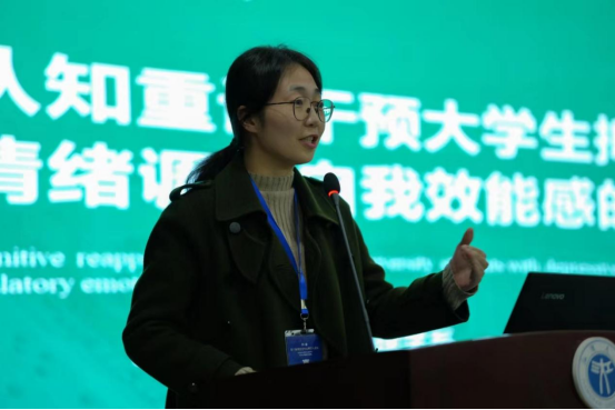 鲁婷副教授在“心理健康研究”分论坛上汇报了《认知重评干预大学生抑郁倾向:情绪调节自我效能感的中介作用》。本研究通过开放式调查编制出一套主题为认知重评的干预材料,运用线上阅读与书写的形式干预抑郁倾向大学生的抑郁水平。本研究为干预大学生抑郁倾向提供新思路,而且对抑郁的预防与干预实践提供了可行的科学指导。
