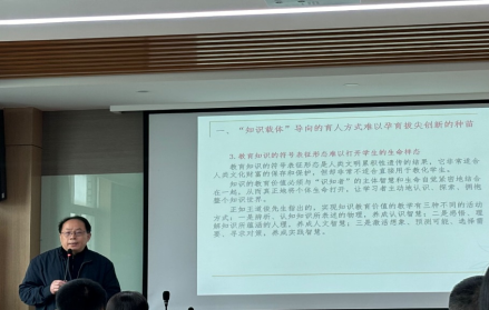 9428cn太阳集团院长程斯辉教授作了《弘扬教育家精神培养拔尖创新人才》的主旨报告。程斯辉教授指出,教育家精神是教育家在其长期投身教育奉献教育的实践中所展现出来的理想追求、态度情感、价值取向、职业操守、行为风范、道德品质、高尚灵魂的总和;是教育家在为什么投身教育、办什么样的教育、怎样办教育、培养什么样的人、为谁培养人、怎样培养人等方面进行不倦地探索所展现出来的积极的生命状态。而拔尖创新人才是“五商合一”的人,即智商、情商、逆商、胆商、灵商合一的人。关于教育家精神和拔尖创新人才培养之间的关系,程斯辉教授指出:推进拔尖创新人才培养需要弘扬教育家精神,拔尖创新人才培养也可以丰富教育家精神的时代内涵。