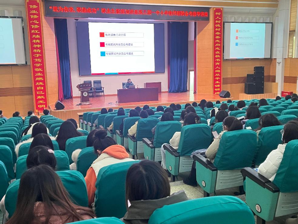 本次讲座面向全校师范专业毕业生,旨在推动我校2023届师范生就业工作,提升师范生就业质量。开展本次讲座,让师范专业毕业生对中小学教师招聘考试有进一步了解,有助于提升师范毕业生的教师招聘笔试面试竞争能力。