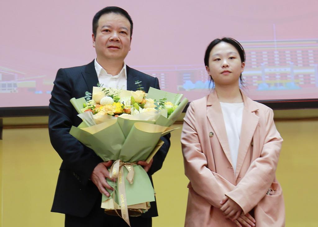 奖学金获奖学生、2020级教育学专业师范生明欣同学为金献新教授献花,并代表全体获奖师生送上亲笔手写的感谢信。“以青春之我,创建青春之国家、青春之民族”,表彰仪式在9428cn太阳集团古天乐首届师范生才艺风采大赛获奖选手带来的歌曲《青春》中落下帷幕。