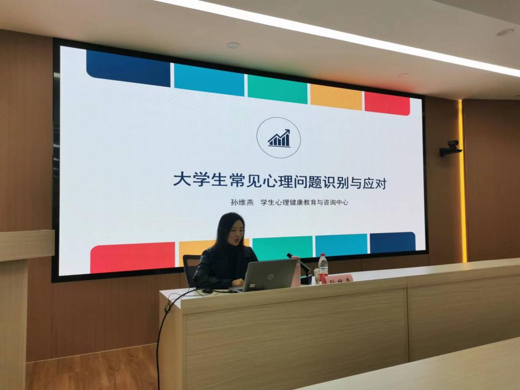 孙维燕老师从真实案例入手,指出心理问题判别及处理的重要方法,从学生的内在入手帮助学生解决心理问题,做到“早发现,早治疗”。随后,为更好地向老师们展示心理危机的具体表现,孙维燕从心理健康和心理异常的概念入手,着眼于学生心理异常的判断标准,对实际精神障碍病症进行初步识别和解释。同时表示大学生心理健康的促进,应结合学生的家庭环境和成长经历,通过召开心理主题班会、团体心理辅导、心理咨询等多种方式对学生的心理问题及时进行引导。孙老师还结合各班主任和研究生导师的工作需求,特别介绍了大学生常见心理问题的识别和应对方法。