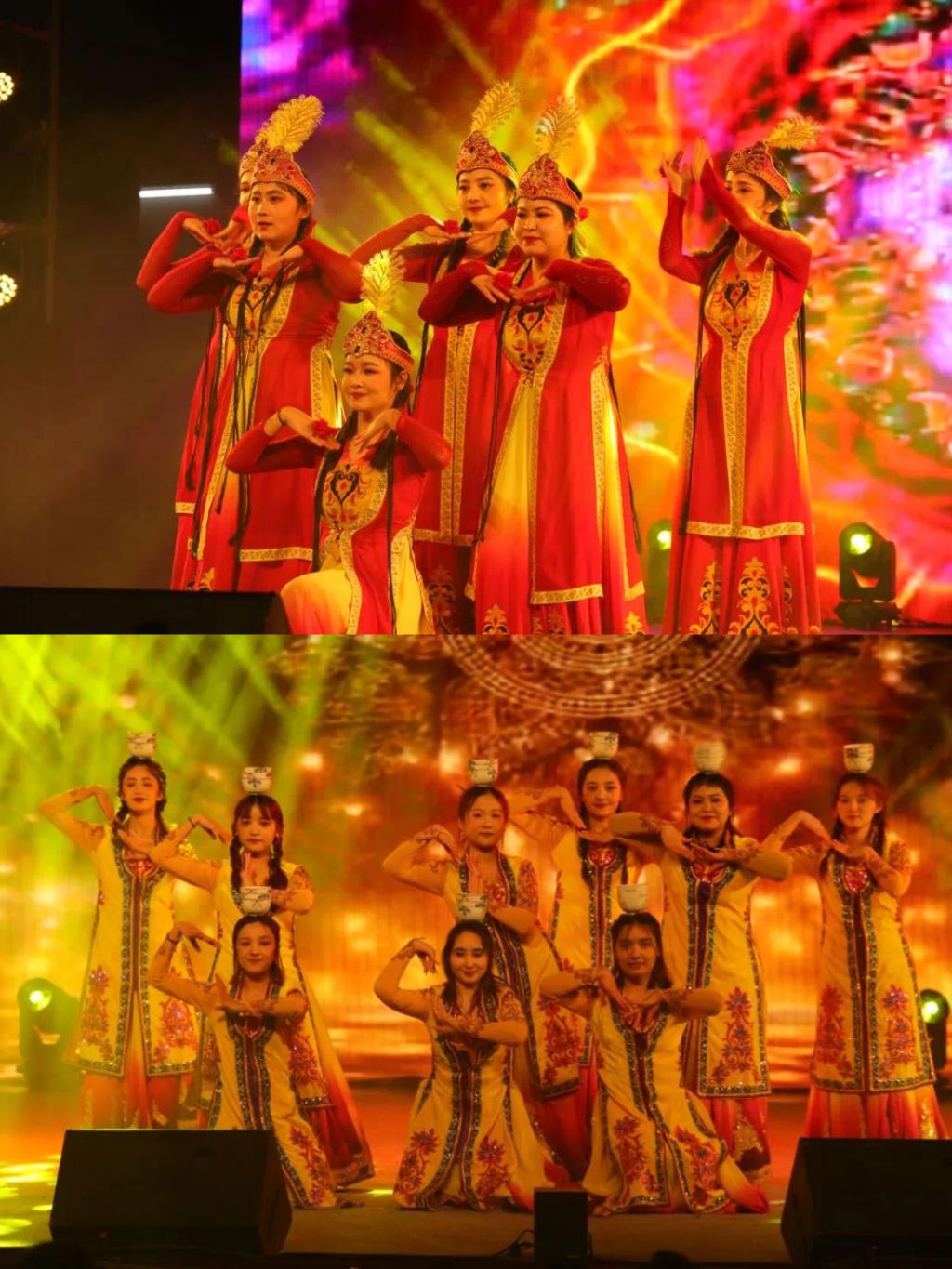 民族同心,百花齐放,《花儿》、《石榴红了》弦鼓一声双袖举,回雪飘摇转蓬舞,多民族心手相连共创幸福。