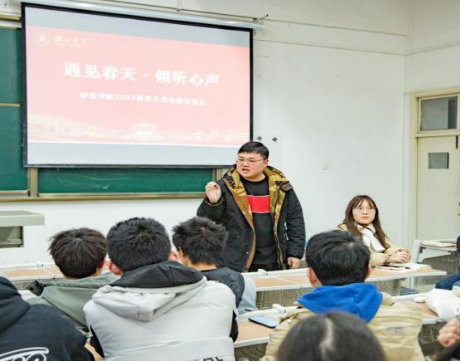 各专业学生代表踊跃发言,重点就学院规划、培养方案、课程设置、入党推优、实习就业、科创竞赛、太阳集团、住宿问题等方面提出了自己的困惑与疑问,学院辅导员张弛、艾麦提江、孙依溪及学生代表韩玥、漆帝志一一回应解答。