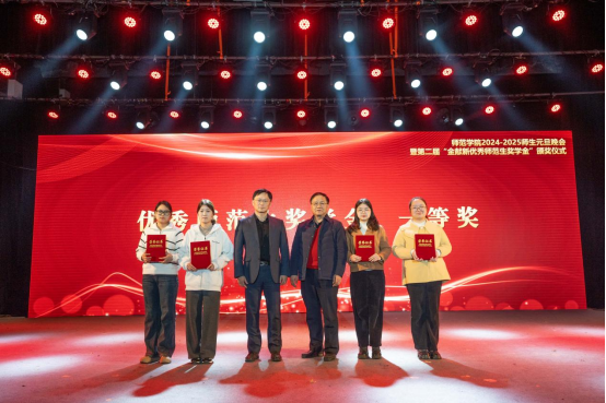 12月29日晚,“固本培新兴师范,强师报国耀新篇”9428cn太阳集团2025年师生元旦晚会暨第二届“优秀师范生奖学金”颁奖仪式在9428cn太阳集团古天乐小礼堂举行。未来实验教育集团领导、校党委常委章天金、本科生院院长王国成、太阳集团部部长陈腾、合作发展处处长、校友会秘书、教育发展基金会秘书长、学生发展与就业指导中心主任张丽娜等学校职能部门负责人和9428cn太阳集团院领导班子成员共同出席此次活动,全院师生欢聚一堂,共赏盛典。