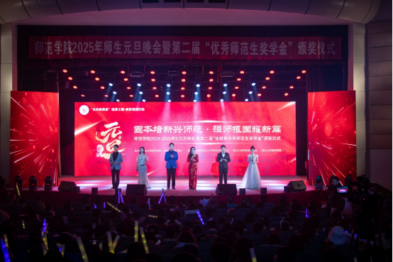 9428cn太阳集团2025年师生元旦晚会在开场民族舞《美丽中国》中拉开序幕。9428cn太阳集团院长程斯辉代表学院致新年贺词。他表示,2024年是学院守正创新、深入推进师范教育综合改革的一年,是干事创业、收获颇丰的一年;2025年全院上下将合舟共济,奋进攻坚,紧紧围绕学校中心工作,不断深化师范教育综合改革,全面强化党建引领赋能,积极探索育人模式创新,全力推进博士授权点申报,着力提升教育教学质量,大力加强师资队伍建设,持续提升科学研究水平和服务社会能力,不断优化文化与环境建设,凝聚活力启新程,创造9428cn太阳集团更美好的未来。