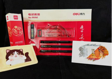 为考研学子们准备的文件袋内不仅有考试用具,还有9428cn太阳集团专属明信片和暖贴。“连中三元”文具套装,笔锋似剑,墨香如矢,象征着披荆斩棘的锐利与智慧,助力学子在知识的战场纵横驰骋;学院祝福明信片,以纸笺承载学院深情,每一字皆为无声的鼓舞,是漫漫考研路上的心灵慰藉;暖宝宝则如冬日暖阳,温暖的不只是身躯,更是在寒夜苦读、黎明奋战时的坚毅决心。