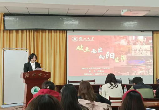 在答辩环节,选手们围绕自身在团组织中的工作成果、服务同学的经历、个人成长与收获等方面进行阐述。教育学(师范类)2201班段焱钰以“破土而出 向阳生长”为题,通过生动事例,展现她作为团学骨干的工作风采;教育学(师范类)2301班团支书熊文卓以“踔厉奋发担使命 青春聚力勇争先”为主题,汇报她担任班级团支书和校团委组织部干事以来的工作成果,展现了一名团干在理论学习与专业实践中的双重成长。