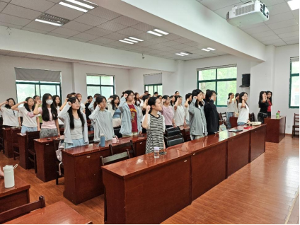 活动在激昂的团歌中拉开帷幕,全体团员面向团旗,庄严宣誓。
