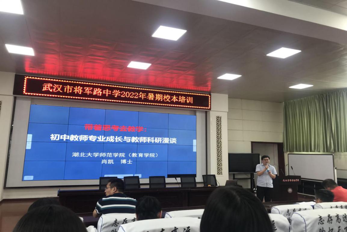 7月7日下午,湖大专家专家团队肖凯博士作了题为《带着思想去教学——初中教师专业成长与教师科研漫谈》专题讲座,肖凯博士首先从在将军路中学三个多月的教师申报立项的市级、教育学会课题开题的经历中分享了他的观察和感受,进而引出本次讲座的三个命题:怎么改变学生的处境?怎么改变教师的处境?怎么改变学校的处境?