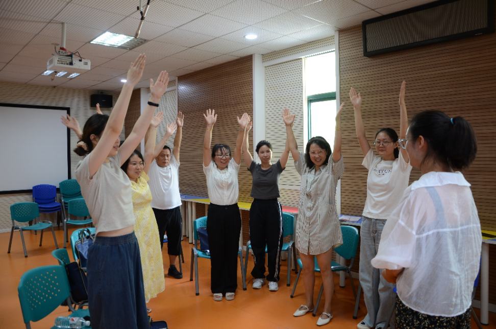 心理学系吕莉博士则重点介绍中小学生团体心理辅导的基本框架与技术,从理论知识讲到实践技能操作,气氛热烈。全体学员分为六个小组参与八个小游戏,充分感受团辅的四个阶段——起始阶段、过渡阶段、工作阶段、结束阶段。大家都洋溢最美的笑容,感动的掌声不断。