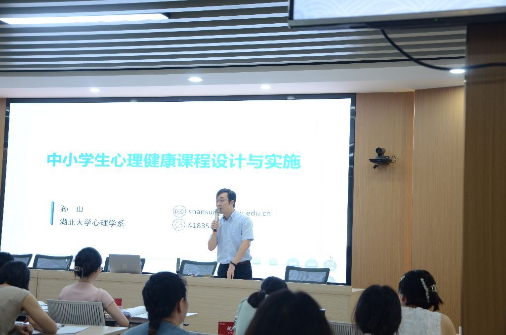 心理学系副系主任孙山博士带来《中小学生心理健康课程设计与实施》专题报告,从理论层面和技术层面一一讲解中小学教师应该如何设计并上好一堂别开生面的心理健康教育课程。通过观看优秀教学实录,学员们对心理健康教育课程设计有了更直观的认识和了解。