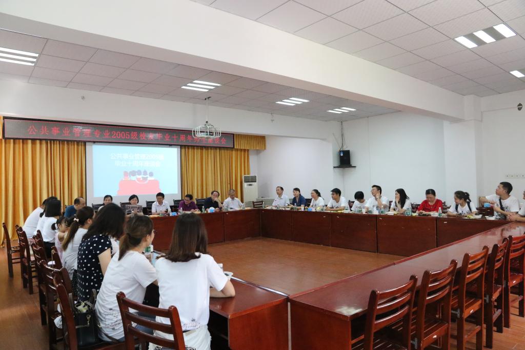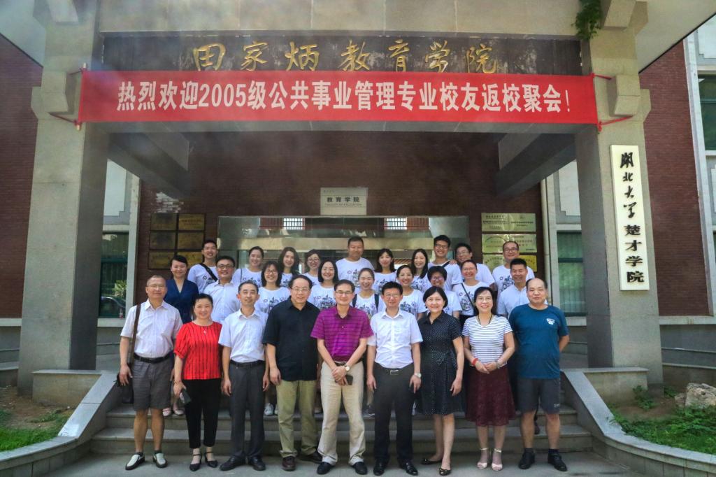 阳光明媚的7月20日,葱葱郁郁的湖大校园,独具温情的教院红楼,迎来了公共事业管理专业2005级20名校友(全班共28人)。上午,在教育学院二楼学术报告厅,校友们统一穿着印有班级同学手绘、蕴含湖大元素的文化衫,与学院老师们座谈。院党委书记王新远、院长李梦卿、院党委副书记余燕、班主任向葵花以及当年的授课老师们出席了座谈会。