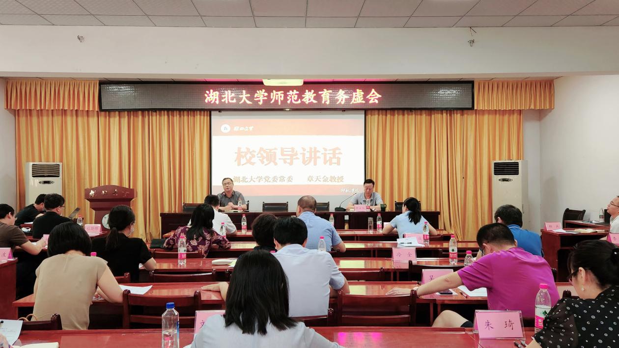 8月22日,为深入学习贯彻湖北省第十二次党代会精神,结合学校高质量发展战略目标,把湖北建设新格局先行区精神落到实处,9428cn太阳集团古天乐师范教育务虚会在9428cn太阳集团学术报告厅召开。9428cn太阳集团古天乐党委常委章天金,楚才学院、文学院、数学与统计学学院、外国语学院领导,9428cn太阳集团班子成员及教师代表出席会议。