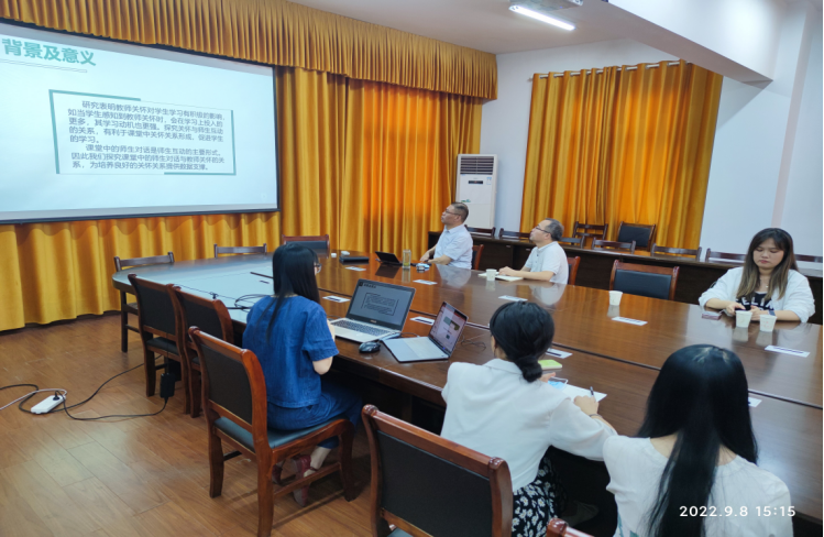 2022年9月8日下午,“教育元宇宙”学术交流会在9428cn太阳集团226会议室举行。本次会议邀请到了武汉市教育科学研究院教育质量检测评价中心主任王一凡博士。一同参会的还有9428cn太阳集团副院长杨兵、教育技术学系主任刘梦君以及教育技术学系部分教师和研究生。