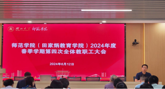 6月12日下午,学院召开第四次全体教职工大会,安排部署党纪学习教育、收入分配改革、教师考核晋升、人才培养方案修订、本科审核评估、毕业生就业和招生宣传、安全稳定等工作。副院长祝逸明主持会议。