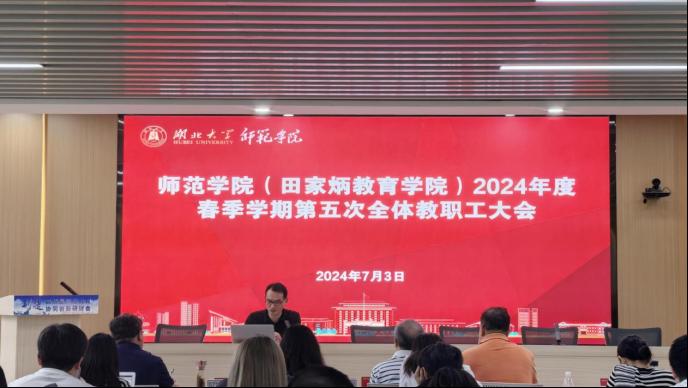 7月3日,学院在正言厅召开春季学期第五次全体教职工大会。会议由副院长祝逸明主持。