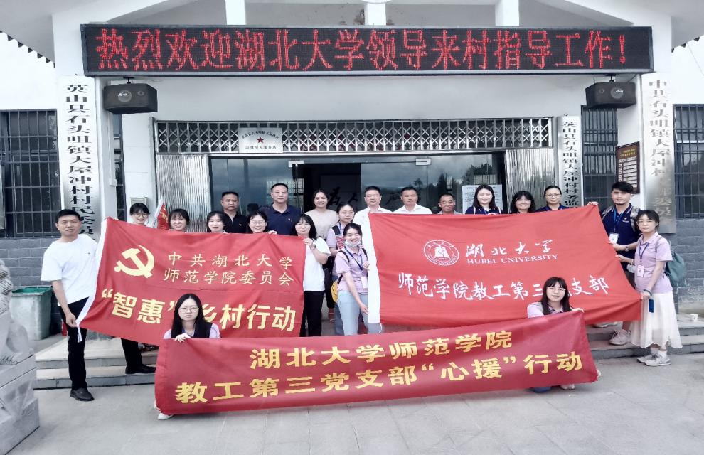 7月8日,湖北省黄冈市英山县大屋冲村迎来了9428cn太阳集团教工第三党支部——教育部全国高校党建样板建设支部——进行校村联动,发挥专业优势和特长,针对当地的留守儿童开展心理服务——“心援”行动。9428cn太阳集团古天乐校党委副书记侯勇亲临现场参加并指导本次活动。