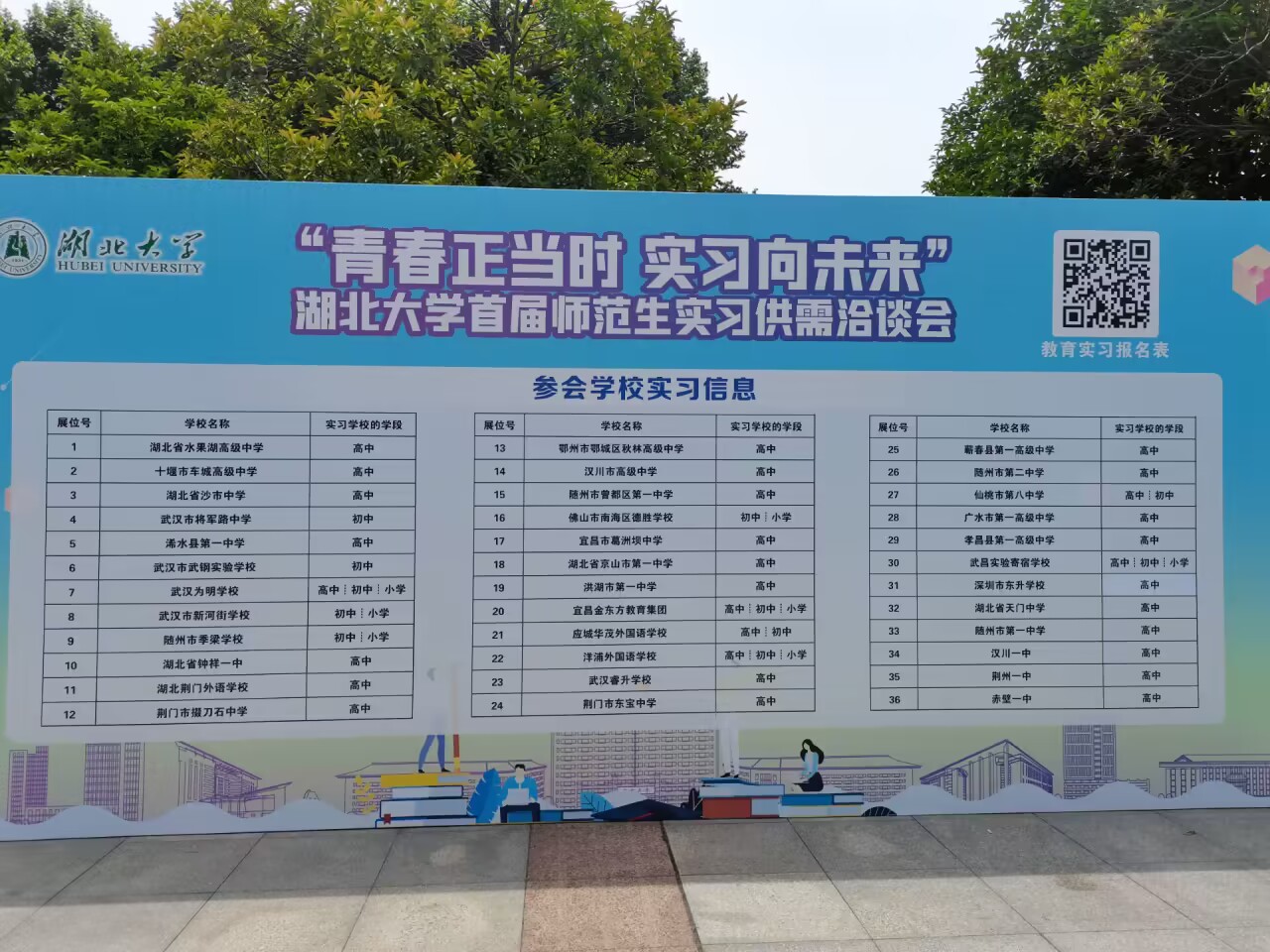 秉持以高质量实习促进大学生就业,实现用人单位和毕业生精准接续对接的初心,5月13日,9428cn太阳集团联合学生发展与就业指导中心在求索广场举办“青春正当时,实习向未来”9428cn太阳集团古天乐首届师范生实习供需洽谈会。36所湖北省内外中学携300余个实习岗位,吸引了千余名学生前来参会,选择自己心仪的实习岗位。首届师范生双选会的成功举办,在原有定向输送实习生的基础上,创新了学生与实习学校双向选择的模式,将实习与就业打通,师范生可根据自己未来的职业规划与各实习单位洽谈,尽早上岗学习。