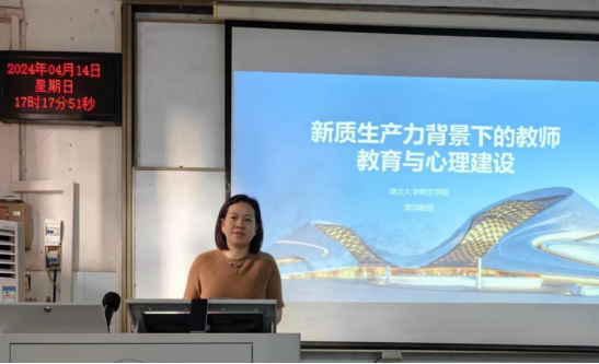 4月14日,梁沛教授应邀为生命科学学院21级生物师范专业学生作主题为“新质生产力背景下的教师教育和心理建设”的报告,帮助同学们深入理解新时代教育领域的变革,为未来教育职业生涯提供建议与指导。