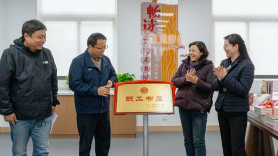 李学初副主席、校工会常务副主席金梅、数统学院书记黄江英共同为学院省级职工书屋揭牌。随后,李副主席向职工书屋赠送书籍,鼓励学院工会充分利用好这一平台,不断拓展书屋功能,推动教职工阅读活动的深入开展,努力打造一个充满书香气息的教职工文化阵地。