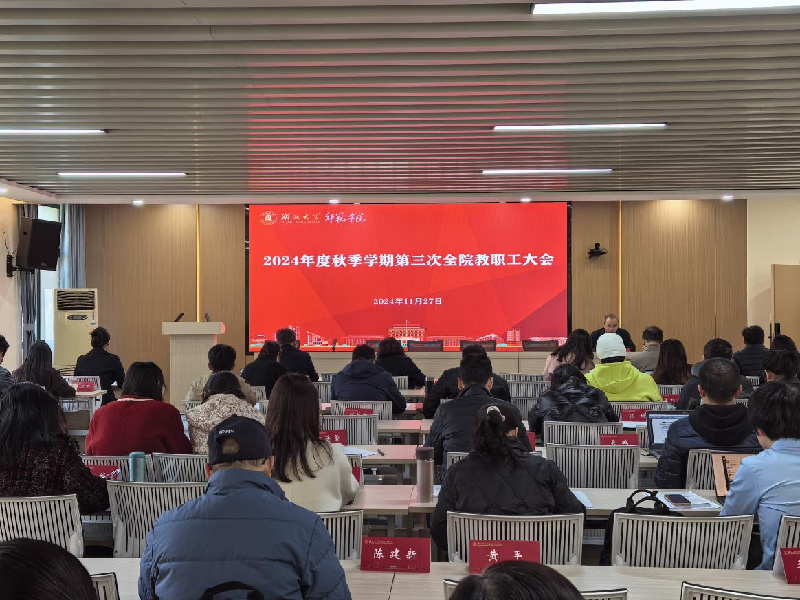 11月27日,学院在正言厅召开本学期第三次全体教职工大会。会议由副院长杨兵主持。