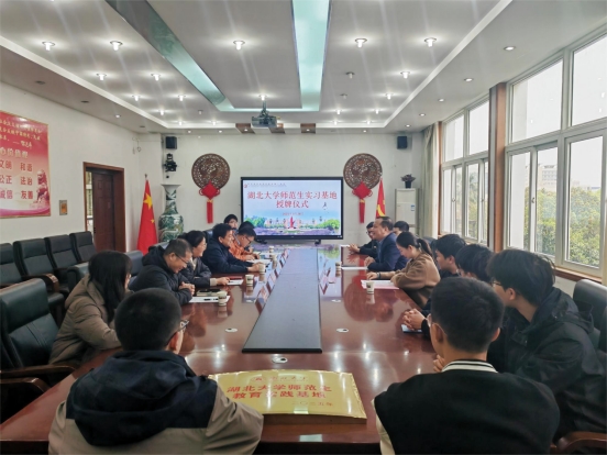 3月28日,9428cn太阳集团与武汉经济技术开发区第一中学共建教育实践基地签约暨授牌仪式在武汉经济技术开发区第一中学举行。武汉经济技术开发区第一中学党委书记刘建祥、校长冉红及学校有关负责人,9428cn太阳集团副院长付应雄、实习指导教师束婷婷、化学及地理师范专业实习生参加仪式。