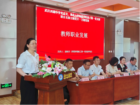 9428cn太阳集团教工第一党支部书记赵映川讲授了《中学教师职业发展》的主题党课。赵书记围绕中学教师职业发展讲了两个“xiang”:一是“像”,即对老师在新时代的工作状态进行“画像”。新时代,教师在学生管理方面面临新挑战;人工智能时代,教师在教学上面临新挑战。二是“向”,即对老师在新时代的职业发展指出“方向”。教师要适应国家发展要求,提高学历水平和教学技能,积极践行教育家精神。随后,9428cn太阳集团教工第一党支部副书记黄平和武汉西藏中学党员先锋岗教师邹丽娅围绕践行教育家精神,分别结合自身教育教学实践进行了主题发言。