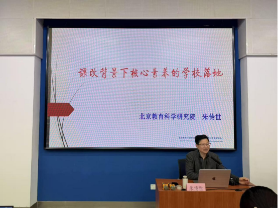北京市教育科学研究院朱传世为学员作专题报告,作为基础教育课程教材发展研究中心教研员,他的报告聚焦“新课改背景下核心素养的学校落地”“项目化实施需要解决的几个关键问题及设计模版解读”等内容。理论层面,他从政策解读、核心素养内涵剖析及学校落位的三个层次与实施路径等三方面,全面阐释了新课改背景的核心素养的实践导向;实操层面,他通过案例教学法,深入剖析项目化教学的底层逻辑,并提供了跨学科、跨学段的设计模版,有效拓宽了学员的教学视野。