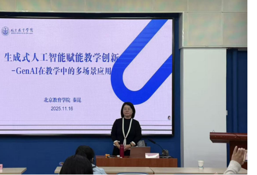 北京教育学院秦昆副教授长期深耕数字教育领域,她以《生成式人工智能赋能教学创新-GenAI在教学中的多场景应用》为题,生动展示了数智时代人工智能技术在教学中的强大潜力与实际应用场景,为教学创新提供了新思路。