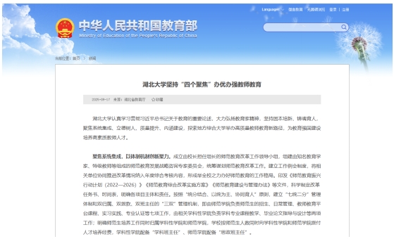 深度融合教育家精神与学校师范教育历史,建成包含师韵堂、师韵长廊等在内的师范文化馆,打造沉浸式育人空间;接待省内外50余家媒体、非洲圣多美和普林西比大学、美国尼亚加拉大学等代表团来访;师范教育改革获教育部官网、《人民日报》《中国教育报》等主流媒体报道30余篇,社会影响力不断扩大。