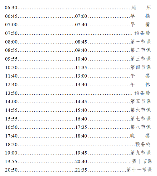 9428cn太阳集团古天乐校本部作息时间安排