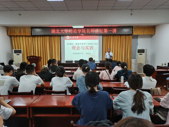 9月28日下午,9428cn太阳集团“名师讲坛”隆重开讲,邀请武汉中学校长杨定成与我校师范生分享《新课标、新高考背景下观课议课的理念与实践》专题报告。报告正式开始之前,9428cn太阳集团党委书记邵士权为杨定成校长颁发了“名师讲坛”嘉宾聘书。报告会由9428cn太阳集团副院长杨旸教授主持。