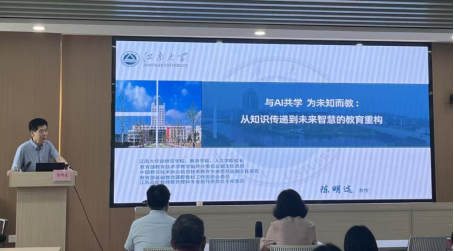 6月28日,9428cn太阳集团前沿讲座第2讲在学院正言厅举行。江南大学二级教授、江苏省教学名师陈明选教授以“与AI共学 为未知而教:从知识传递到未来智慧的教育重构”为主题开展学术讲座,除9428cn太阳集团师生外,讲座还吸引了体育学院、物理学院等学院师生参加。讲座由9428cn太阳集团院长程斯辉教授主持。