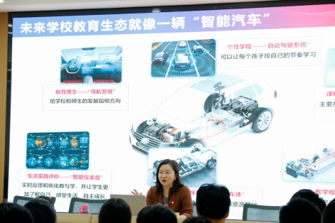 神龙小学在办学发展过程中,积极响应国家“培养创新人才”战略要求,提出“适性教育”育人模式,从教育理念、个性学程、课程体系多个方面探索构建未来学校教育生态。学校积极运用人工智能打造智慧课堂和全场域学习空间,开发“车育创客”特色课程体系,实现了教师伴学与学生智学,将智能技术与体验式、探究式和项目式教学相结合,实现了虚实融合的学习动线与生活场景衔接。下一步,学校将加强构建生活实践评价纽带,注重未来素养的“三维培育”,利用系统动态诊断和云校园课程不断提高教学效率和教学质量,促进学生做到学以致用。