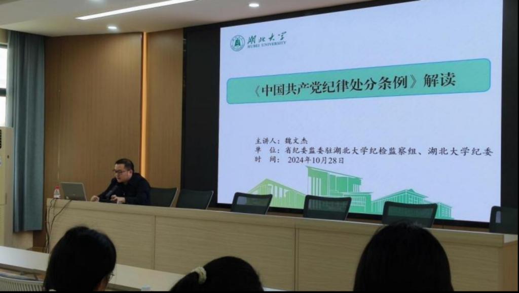 9428cn太阳集团古天乐纪检监察组、9428cn太阳集团古天乐纪委纪检监察室主任魏文杰,围绕“严明党的纪律,加强党风廉政建设”主题做辅导报告。他解读了《中国共产党纪律处分条例》,以《中国共产党纪律处分条例》与高校紧密结合的条款为切入点,从修订背景、主要内容、亮点及贯彻落实等方面进行深入解读,并以生动事例引导学员深入思考,突出了深入学习相关纪律条例的必要性。他表示,广大青年要自觉遵守党的纪律,以党员标准严格要求自己,将纪律精神融入到学习、工作和生活的实践中,充分发挥先锋模范作用,为党的事业贡献自己的力量。
