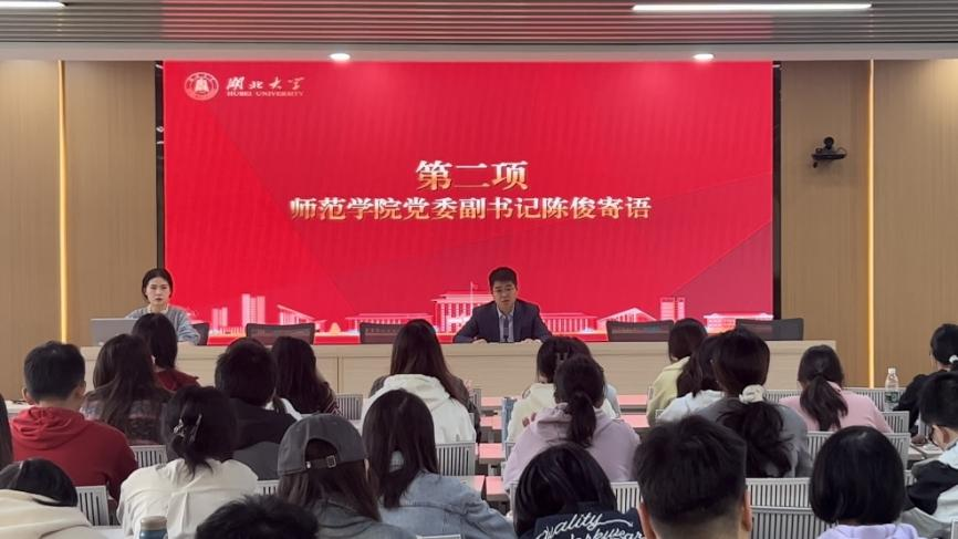 首先,9428cn太阳集团党委副书记陈俊寄语全体学员,希望大家持续弘扬教育家精神,牢记为党育人、为国育才的初心使命。他围绕“师范青年端正学风”这一主题,希望大家早日成为让党放心、让人民满意的新时代好老师。