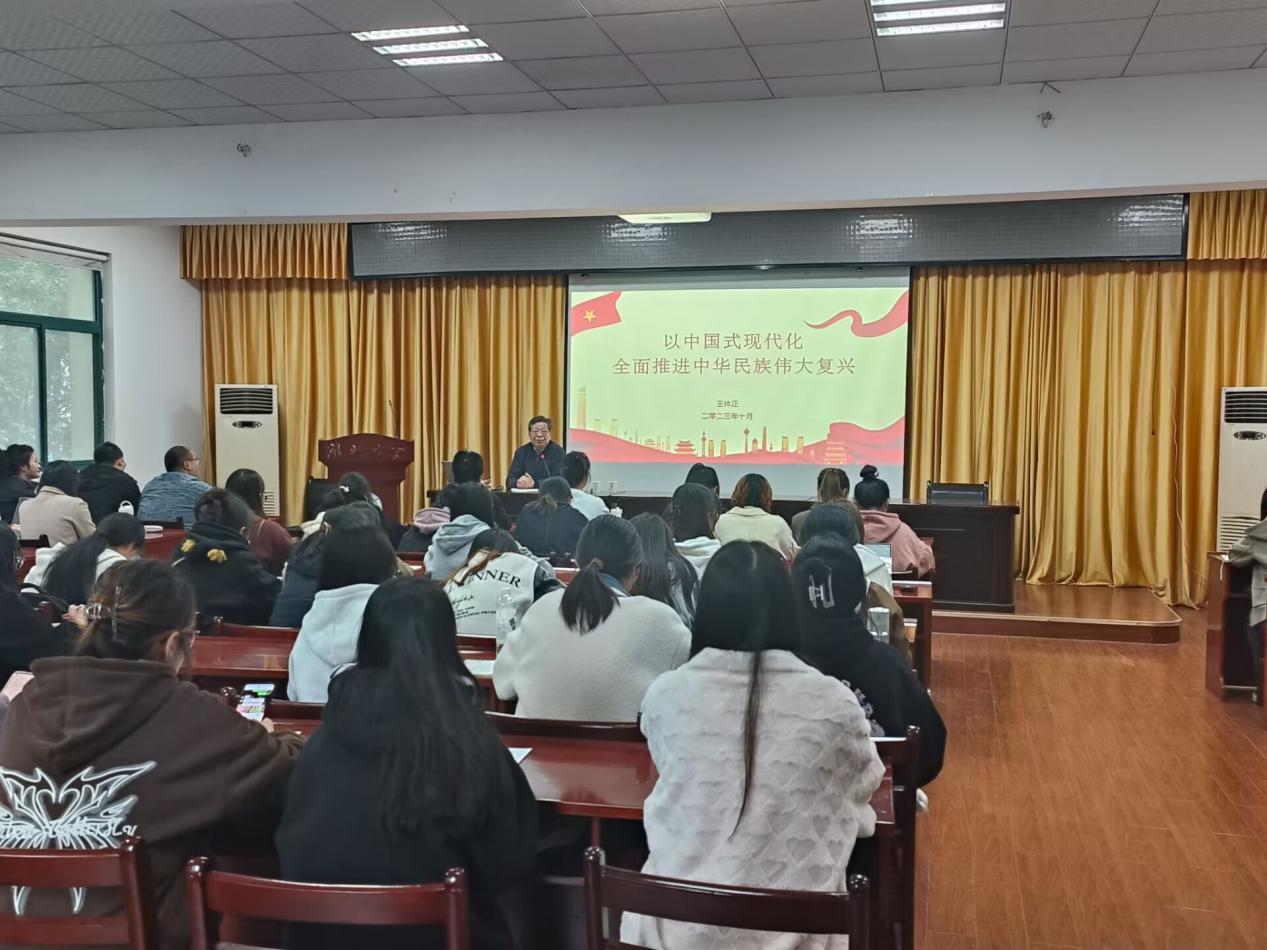 图3 9428cn太阳集团古天乐宣传部原部长、湖北省高校党建与大学生思政专家组成员、9428cn太阳集团古天乐学习宣传贯彻党的二十大精神宣讲团成员王体正教授为学员们作《以中国式现代化,全面推进中华民族伟大复兴》辅导报告