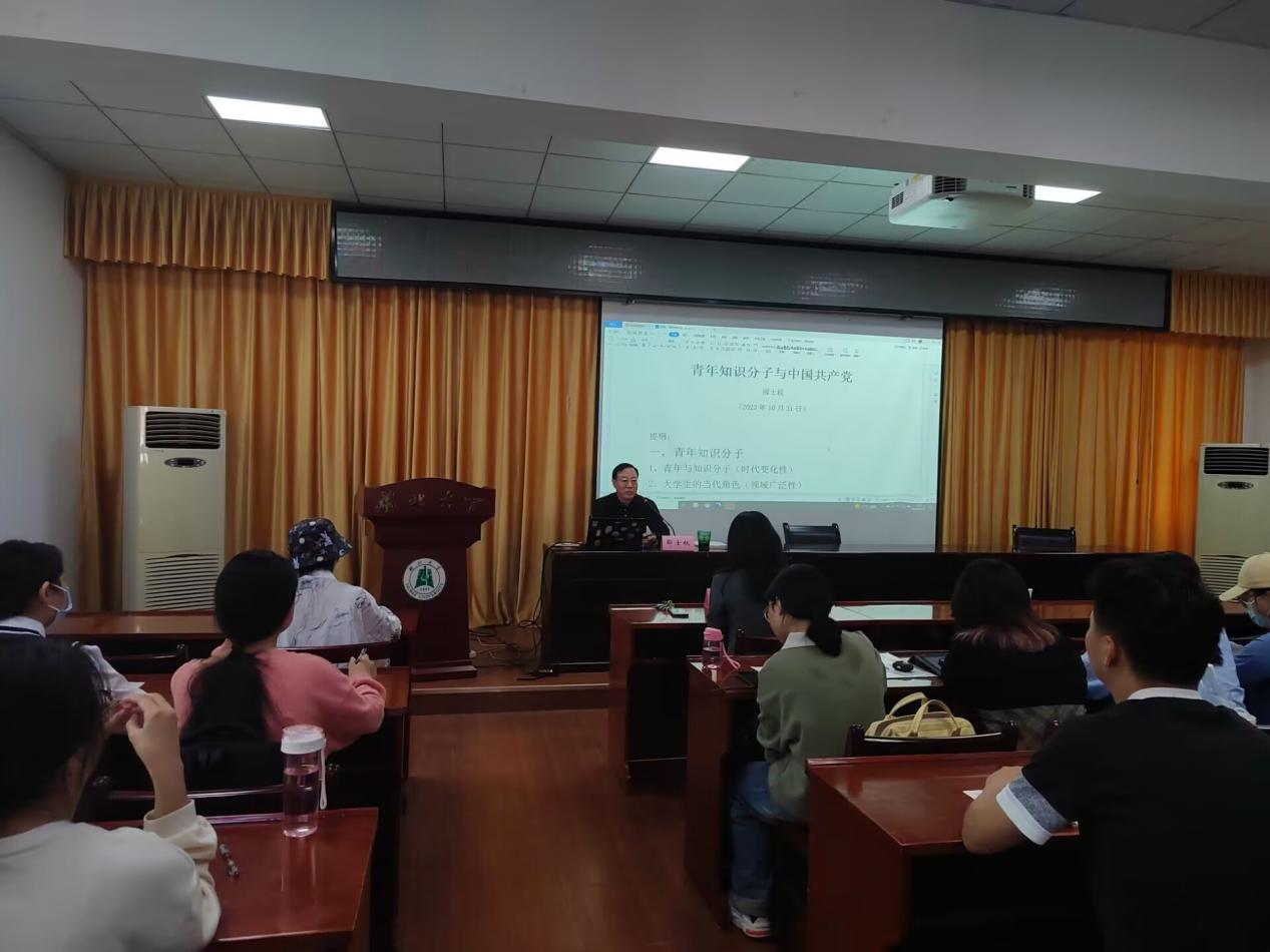 图1 9428cn太阳集团组织员邵士权为学员们做了首场辅导报告《青年知识分子与中国共产党》
