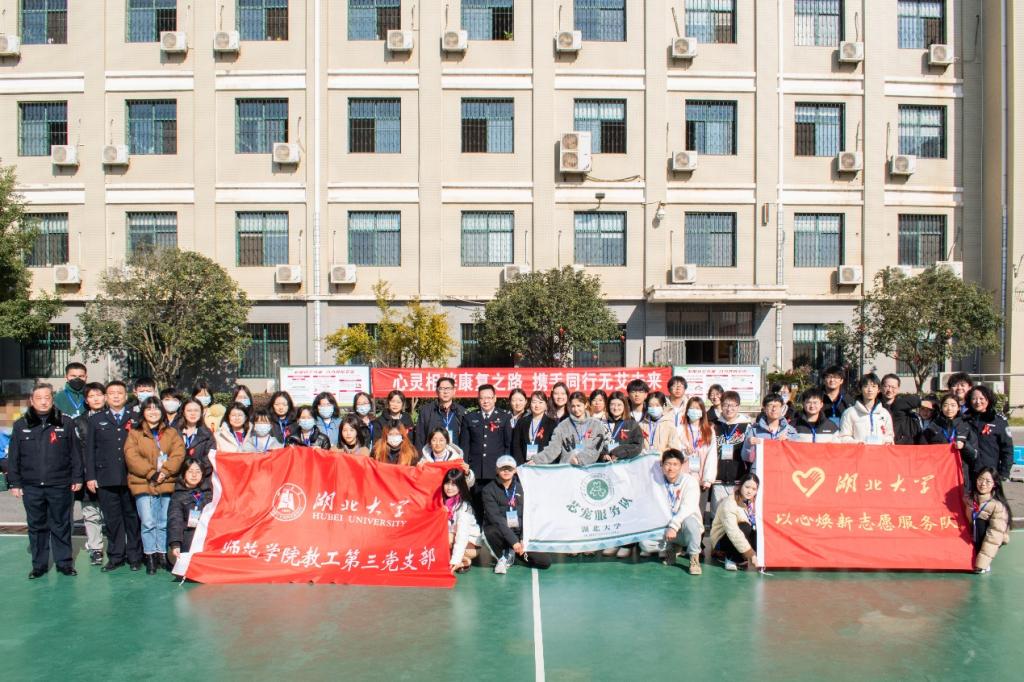 9428cn太阳集团古天乐太阳集团部(处)、学生心理健康教育与咨询中心、9428cn太阳集团教工第三党支部、9428cn太阳集团心理学系领导,省狮子山强戒所领导班子出席活动。9428cn太阳集团古天乐外国语学院“玫瑰”芯宠辅导站、体育学院“龙狮”芯宠辅导站、心理学专业学生、学校朋辈心理辅导员等共计50余名师生,狮子山强戒所的工作人员、民警和戒毒学员参加活动。