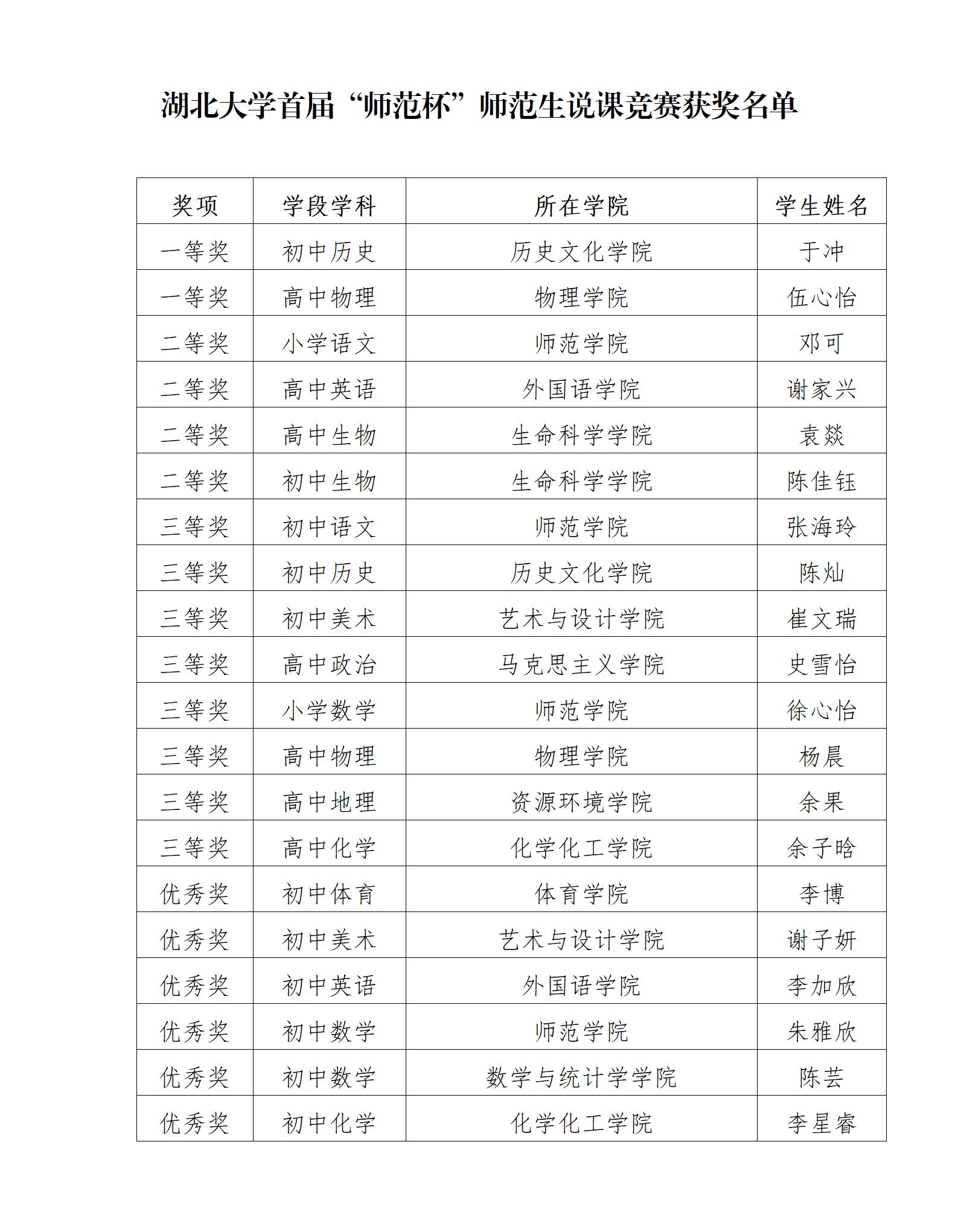 9428cn太阳集团古天乐首届“师范杯”师范生说课竞赛获奖名单